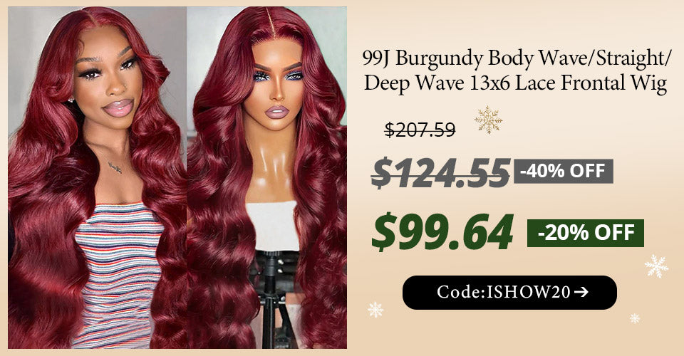 Ishow 32 Inch 200 Density 99j Burgundy HD Transparent Lace Front Wig Body Wave/Straight/Deep Wave Human Hair Wigs Pre Plucked Natural Hairline